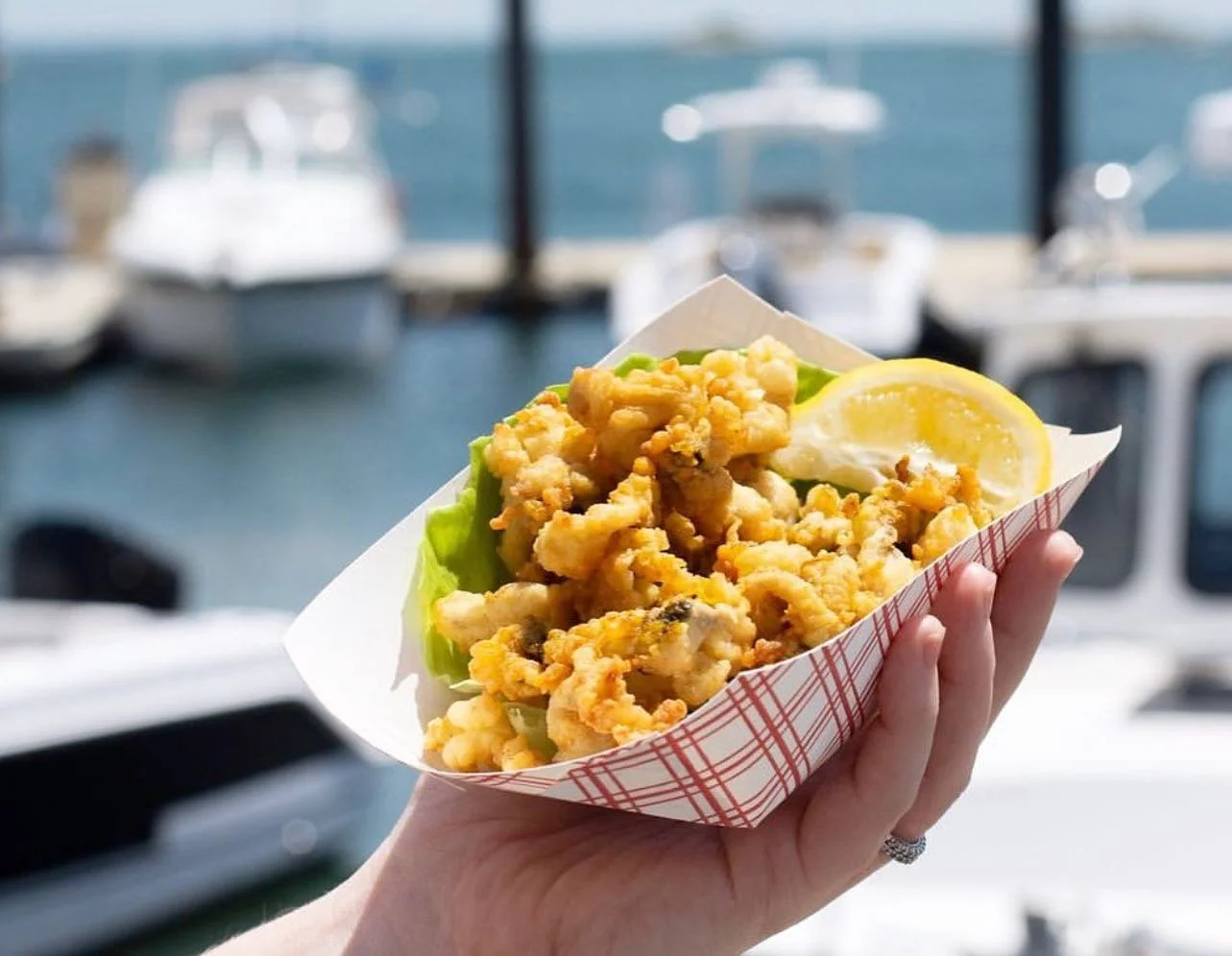 Open daily and offering Lunch and Dinner. Featuring raw bar, local fish, lobster rolls, smash burgers, farm veggies. BYOB or drink delivery service by Universal Package Store. Docking available if you arrive by boat!